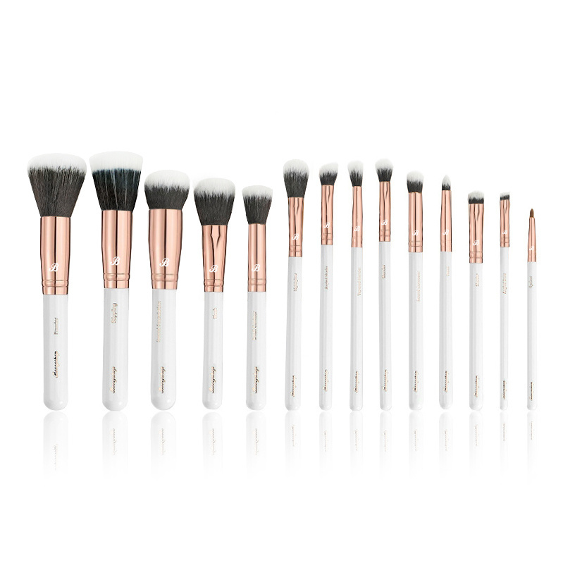 Het wit houten handvat heeft een glossy finish. Dat in combinatie met het rosé gouden aluminium ferrule is deze kwastenset een echte luxe toevoeging aan jouw stash. De superzachte synthetische vezels zijn er speciaal voor gemaakt jouw make-up perfect aan te brengen.