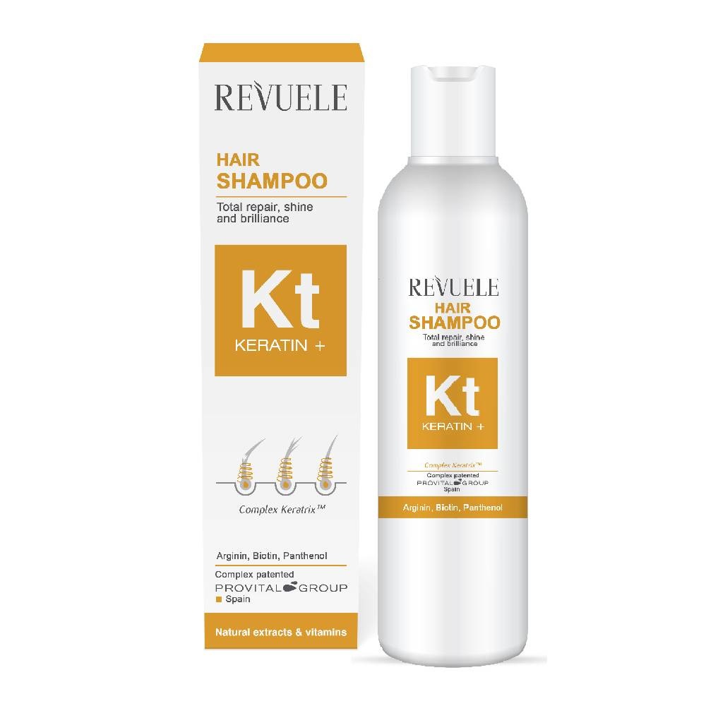 De Revuele Keratin+ Hair Shampoo is een shampoo met Keratine voor de verzorging van broos, dof, dun en droog haar met gesleten haarpunten. De Keratrix® complex formule beschermt je haar en voedt intens. De shampoo maakt dunner haar sterker en zorgt voor volume en glans. De shampoo bevat microcapsules van creatine en arginine die de kleinste scheurtjes in je haar versterken, hydrateren en verzadigen met voedingsstoffen.