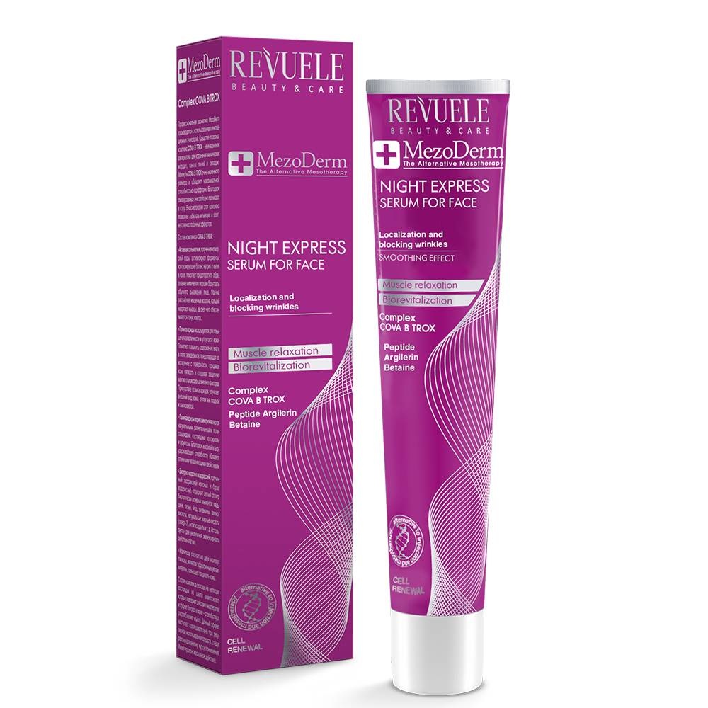 De Revuele MezoDerm Night Express Serum for Face is een serum speciaal ontwikkeld voor intensieve voeding en verjonging van de huid 's nachts. Het serum zorgt ervoor dat de cellen kalm en ontspannen blijven terwijl jij slaapt.