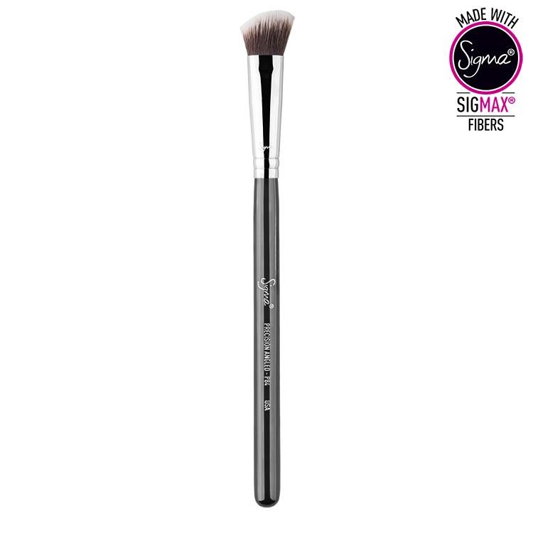 Sigma P84 Precision Angled is een kleine kwast met een ronde hoek gemaakt van exclusieve Sigmax vezels. Deze kwast is ontworpen om je vingertoppen na te bootsen en perfect voor het aanbrengen van contour shades in de holtes van de wangen en op de zijkanten van de neus.